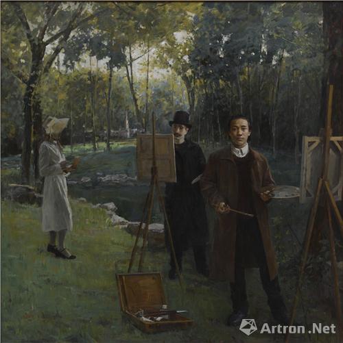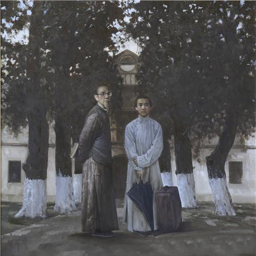 翁诞宪 《林风眠与恩师梁伯聪》 200×200cm